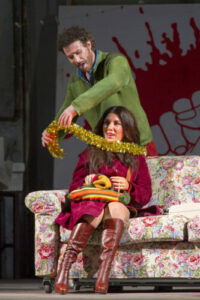 Lo scollamento tra ciò che si vede e ciò che si sente richiede ovviamente che lo spettatore stia al gioco e sviluppi una certa complicità con ciò che accade sul palco. E a dir la verità per la maggior parte del tempo la regia scorre, l’ambientazione non disturba, e le invenzioni sceniche veramente disturbanti in realtà non sono tantissime.