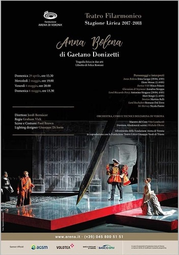 Anna Bolena di G. Donizetti ritorna al Teatro Filarmonico di Verona dopo undici anni. La messa in scena di Graham Vick, che aveva debuttato proprio in questo teatro nel 2007, non sembra accusare il tempo che passa. Il folto pubblico intervenuto alla prima del 29 aprile 2018 ha accolto favorevolmente, ancora una volta, questa produzione ed il cast proposto.